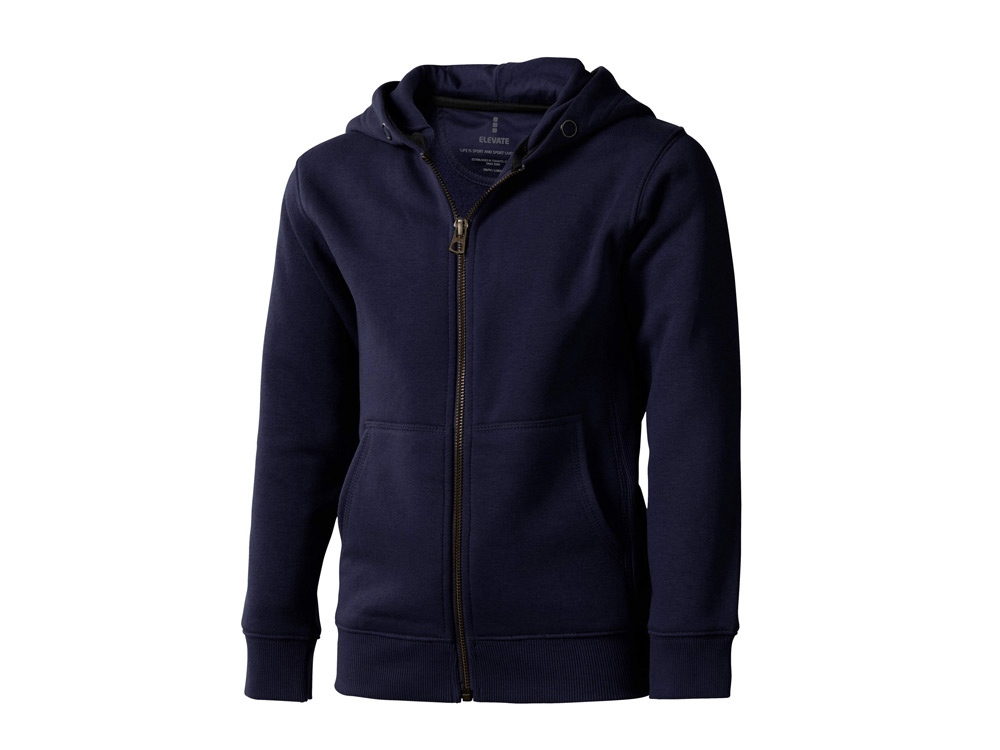 Детский свитер Arora с капюшоном и застежкой-молнией на всю длину. Стандартный покрой. Резинка 2х2 на боковых вставках, поясе и манжетах. Карман кенгуру. Подкладка внутри капюшона. Атласная лента внутри горловины. Принт лого сзади в тон изделия. Серебристые люверсы с лого. Ворсистый внутри для мягкости, тепла и комфорта. Трикотаж: 82% хлопок, 10% вискоза и 8% полиэстер, чесаная внутренняя сторона. 300 г/м². Трафаретная печать (1 цвет (цветные изделия)) на данный товар осуществляется бесплатно. Оплачивается только настройка оборудования в размере 8200 рублей на весь тираж.