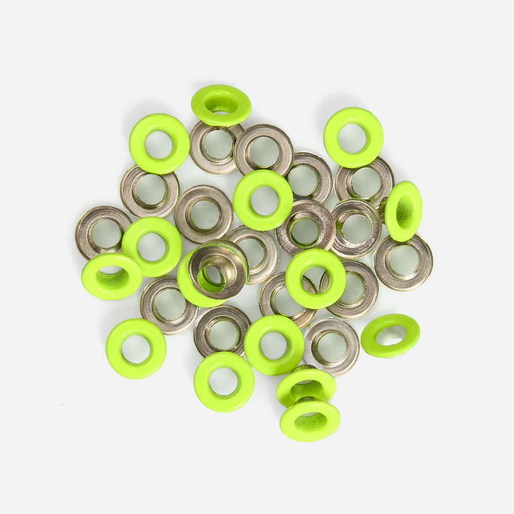 Не подходит для установки на трикотаж. Предназначен для укрепления краев отверстий, используемых для продевания стропы, шнурков, резинки. Легко послужит и элементом дизайна.