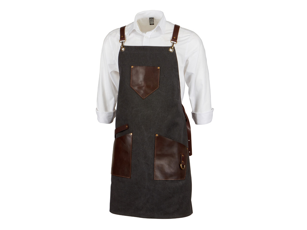 Фартук из канваса с ремнями из натуральной кожи, материал: канвас смесовый, плотность 450 гр/м, натуральная кожа КРС, цвет черный, коричневый темный