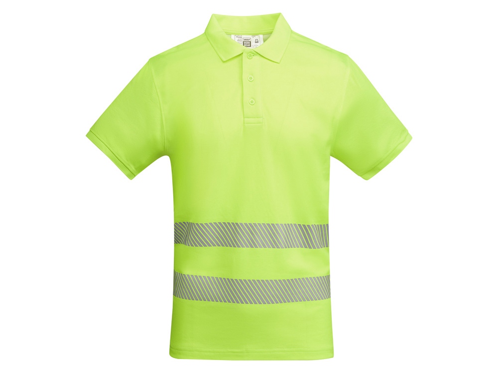 Рубашка поло со светоотражающими элементами с коротким рукавом с воротником в рубчик 1x1. Планка на 3 пуговицы. Две светоотражающие сегментированные полосы на груди. Микс полиэстера и хлопка для повышенной воздухопроницаемости. Дополнительный карман.