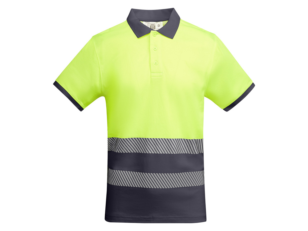 Рубашка поло со светоотражающими элементами с коротким рукавом с воротником в рубчик 1x1. Планка на 3 пуговицы. Две светоотражающие сегментированные полосы на груди. Микс полиэстера и хлопка для повышенной воздухопроницаемости. Дополнительный карман.