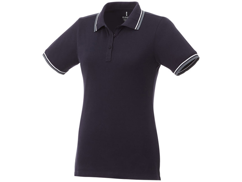 Женская футболка поло Fairfield с коротким рукавом с проклейкой. Воротник гладкой вязкой в рубчик. Манжеты гладкой вязкой в рубчик. Контрастные окантовки. Планка с тремя пуговицами (мужская модель).Гравированные пуговицы в цвет изделия. Комфортный ярлык-трансфер на изделии. Трикотажное пике, 100% хлопок. 180 г/м².