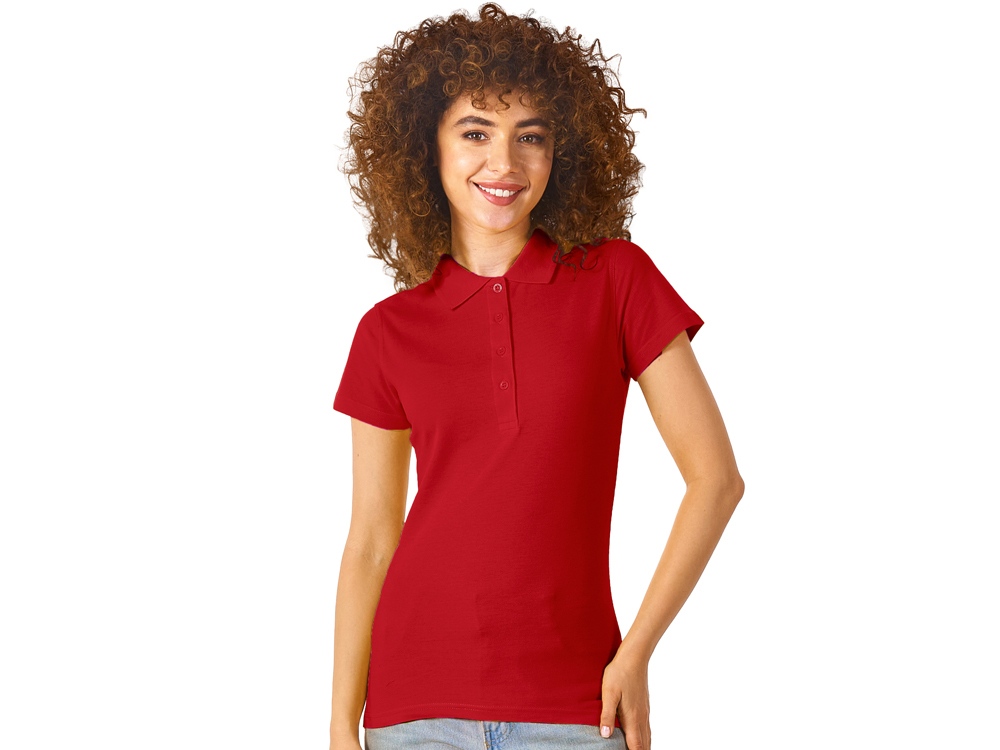 Женская рубашка-поло First. Воротник 1х1. Обшивка внутри воротника. Мужская и детская модели с 2 пуговицами, женская - с 4 пуговицами. Пуговицы с гравировкой в тон. Пике, 100% хлопок. 160 г/м2.