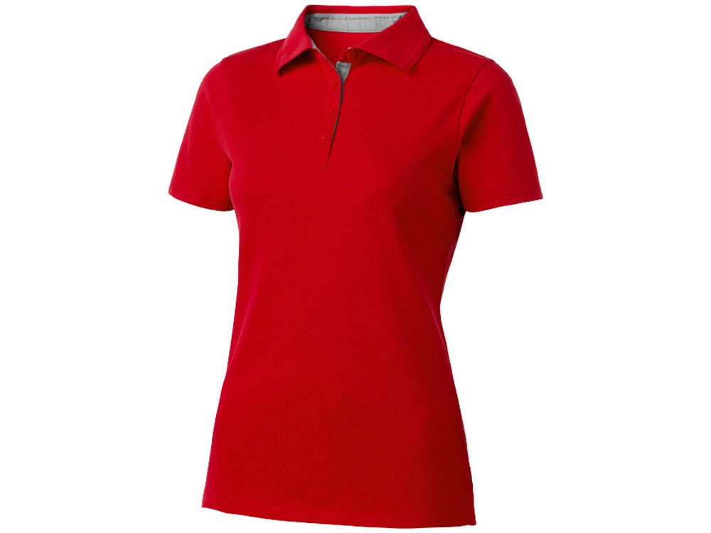 Поло женское с короткими рукавами Hacker. Воротник гладкой вязкой в рубчик. Окантовка с тиснением. Серый поплин внутри воротника - стойки и на манжетах. Планка с четырьмя пуговицами. Боковые разрезы. Гравированные пуговицы в цвет изделия. Комфортный ярлык-трансфер на изделии. Пике, 100% хлопок. 220 г/м².