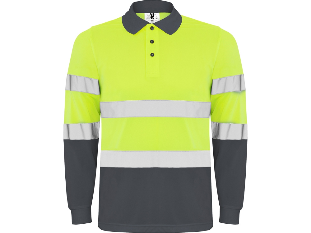 Поло Polaris мужское c длинным рукавом, свинцовый/неоновый желтый