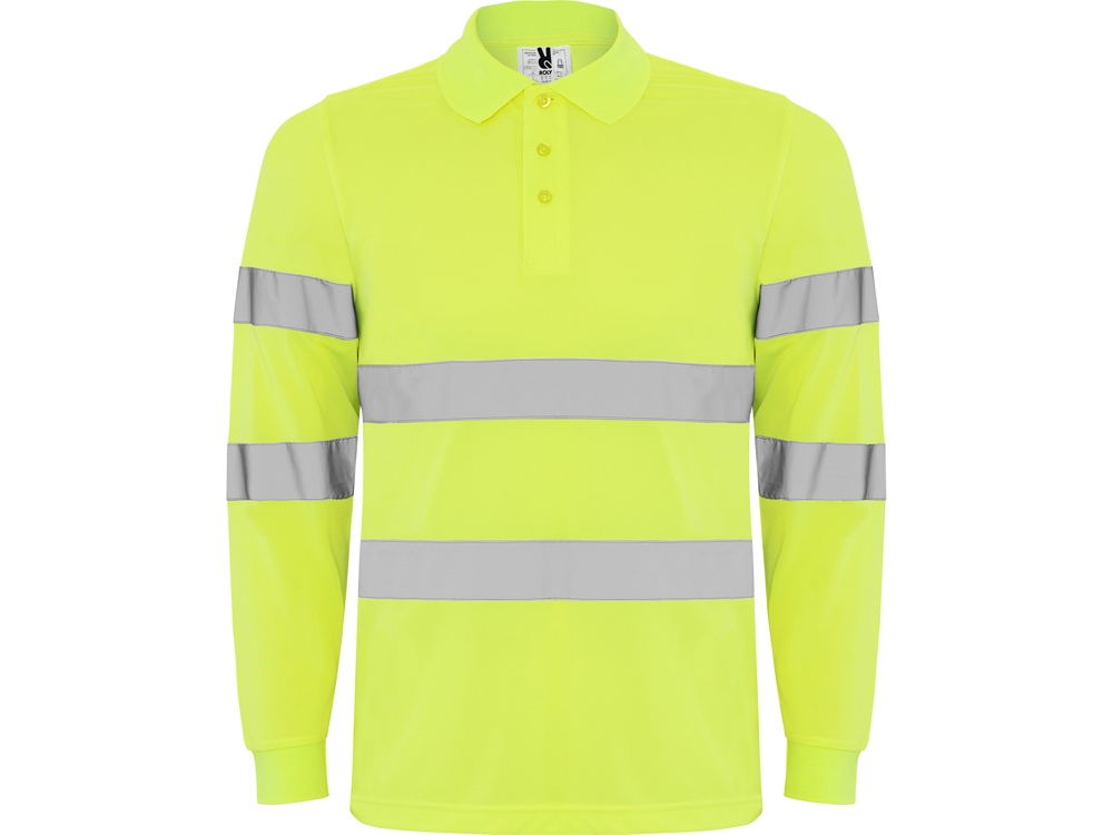Техническая рубашка поло с длинными рукавами. Планка на 3 пуговицы. Воротник и манжеты в рубчик 1 x 1. Две горизонтальные светоотражающие полосы на туловище и рукавах. Ткань предотвращает зацепление.