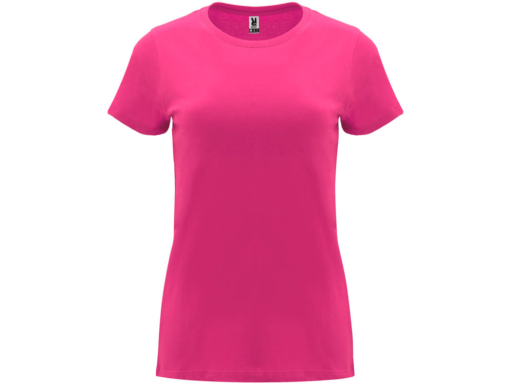 Женская приталенная футболка. Круглый вырез горловины обработан рибом 1х1. Шов горловины укреплен тесьмой.