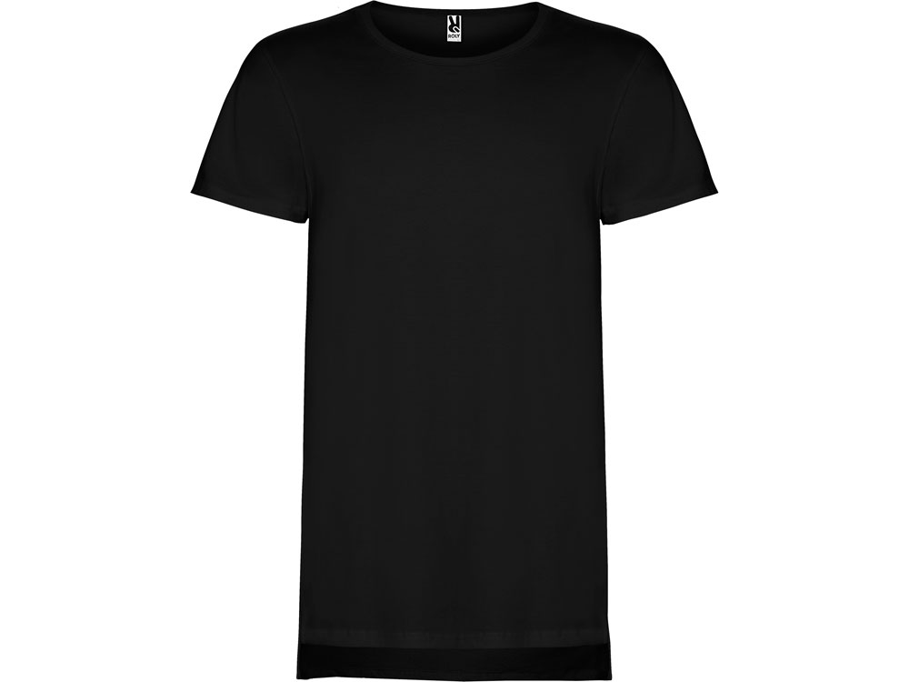 Удлиненная футболка с коротким рукавом. Круглый вырез, разрезы в боковых швах, спинка длиннее полочки.