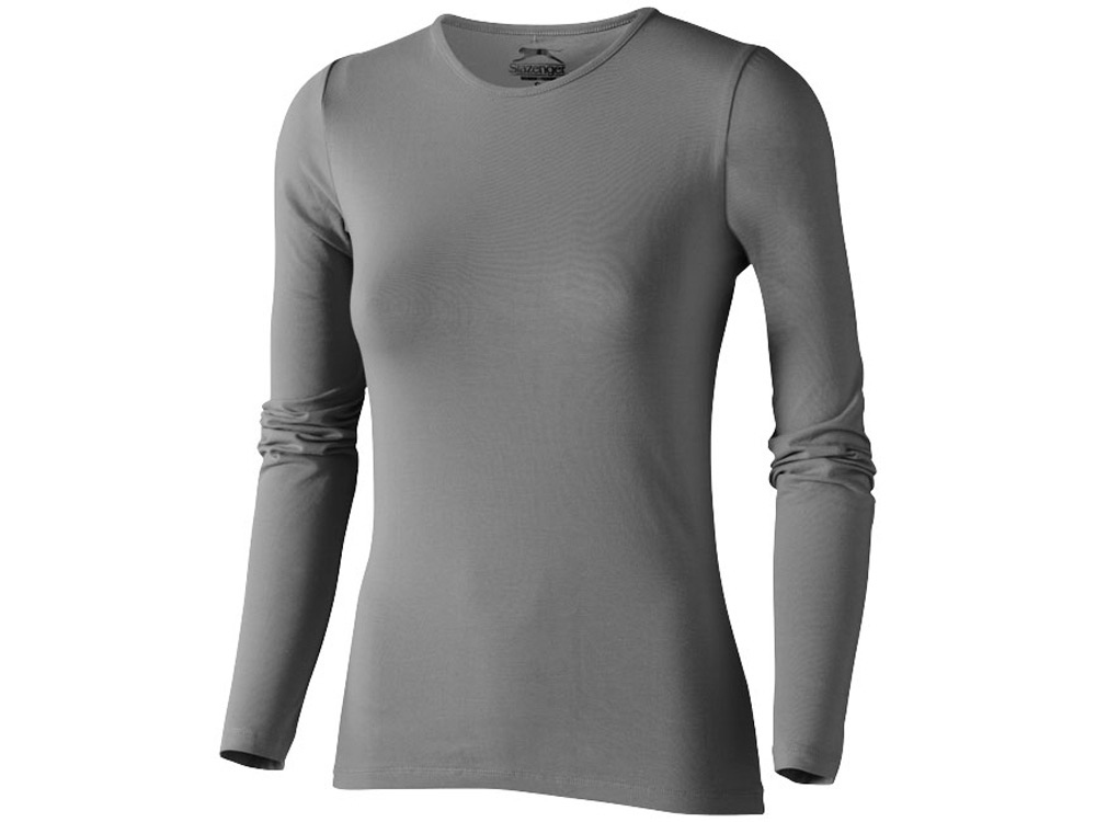 Женская футболка с длинными рукавами Curve. Стандартный покрой. Воротник из ткани изделия. Принт Slazenger на шве слева. Однослойная джерси гладкого переплетения, 95% хлопок и 5% эластан. 200 г/м². Трафаретная печать (1 цвет (цветные изделия)) на данный товар осуществляется бесплатно. Оплачивается только настройка оборудования в размере 8200 рублей на весь тираж.