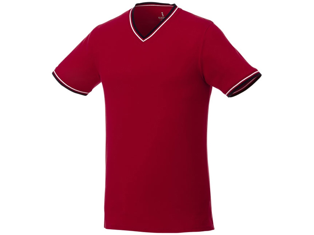 Мужская футболка Elbert с коротким рукавом. Воротник гладкой вязкой в рубчик. Манжеты гладкой вязкой в рубчик. Контрастные окантовки.V-образная горловина. Двойная строчка на воротнике и внизу изделия. Комфортный ярлык-трансфер на изделии. Трикотажное пике, 100% хлопок. 180 г/м².