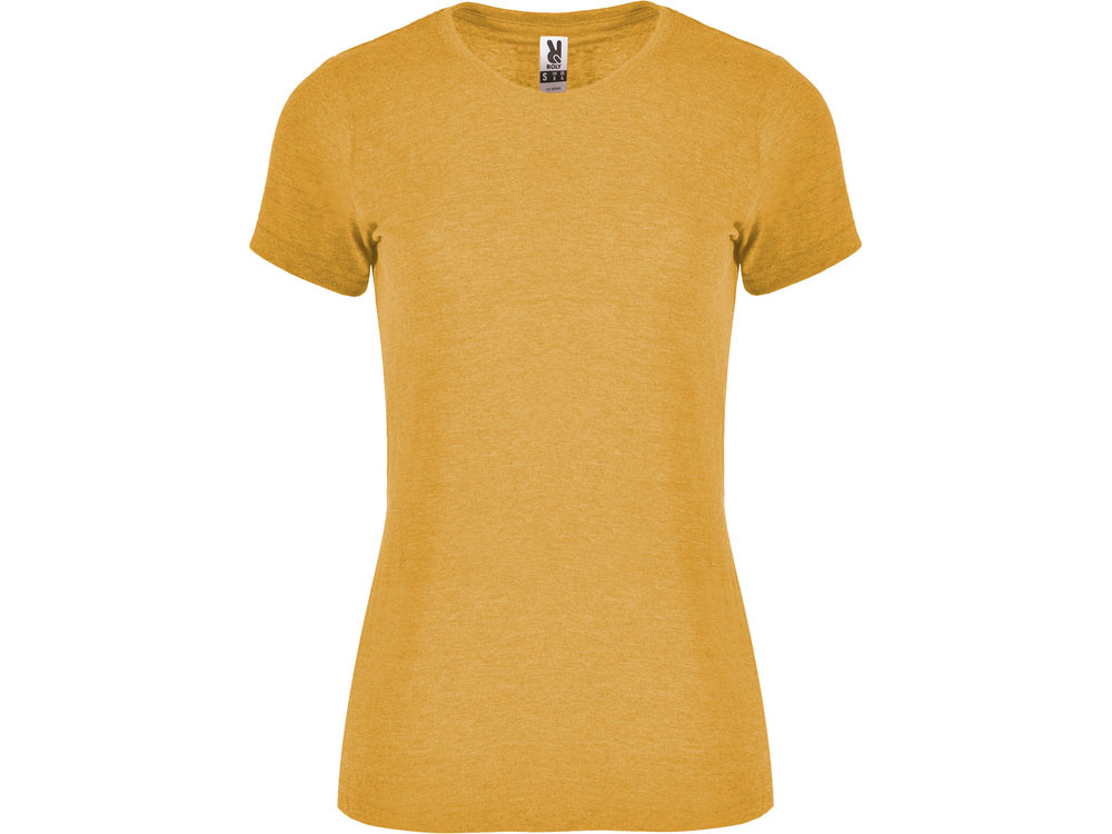 Футболка с коротким рукавом в меланжевом эффекте. Риб горловины 1х1 дополнительно укреплен двойной строчкой.