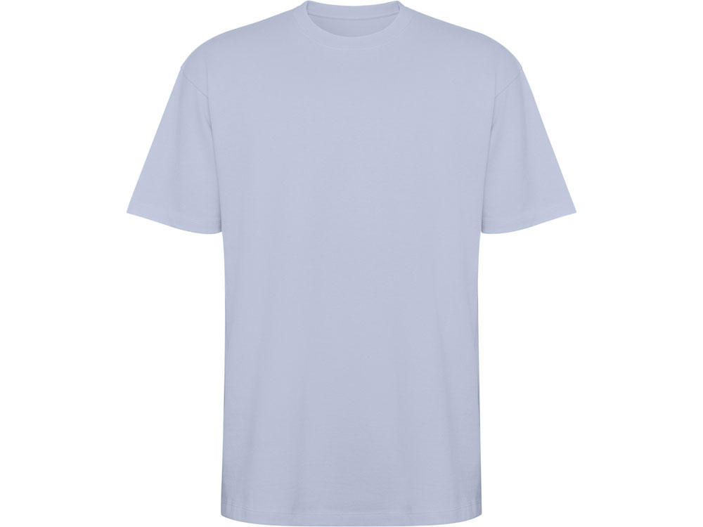 Оверсайз футболка с коротким рукавом. Круглый вырез горловины обработан рибом 2х1. Боковые швы. Широкая двойная отстрочка по рукавам и низу.