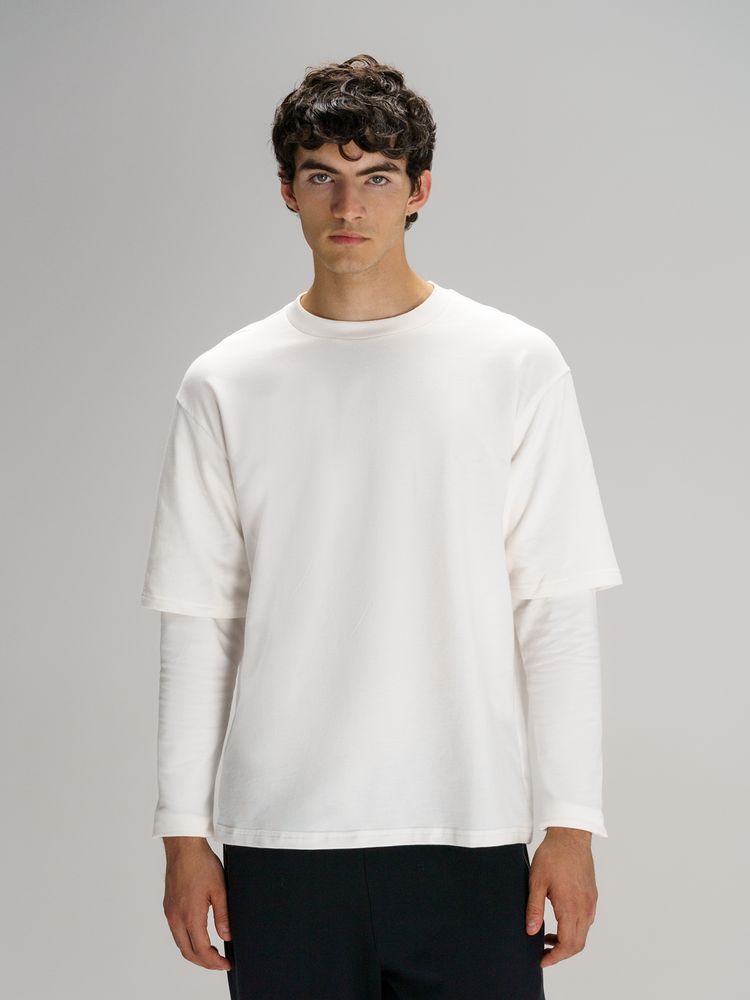 Модель : Футболка оверсайз с двойным рукавом Kosmos, молочно-белая