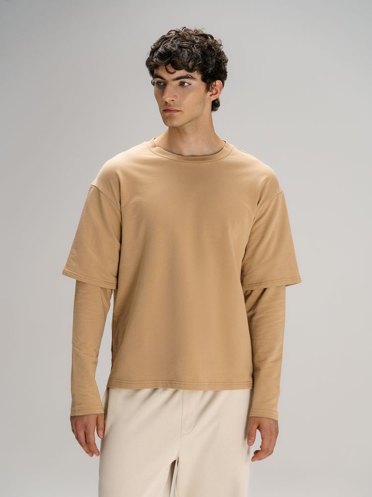 Футболка оверсайз с двойным рукавом Kosmos, бежевая, размер XL/XXL