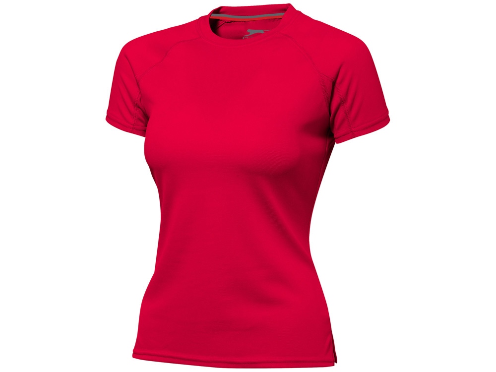 Женская футболка с короткими рукавами Serve. Прилегающий покрой. Обшивка внутри воротника. Рукава реглан, плоская строчка. Принт Slazenger на шве слева. Полоска на горловине в контрастном цвете. Cool Fit. Сетчатый материал из 100% полиэстера с дышащей поверхностью. 125 г/м². Трафаретная печать (1 цвет (цветные изделия)) на данный товар осуществляется бесплатно. Оплачивается только настройка оборудования в размере 8200 рублей на весь тираж.