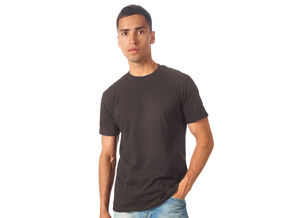 Мужская футболка сшита из натурального хлопка без боковых швов. Отлично подходит для нанесения рекламной информации. Возможна вышивка или трафаретная печать. Натуральный материал не вызывает раздражения кожи.
