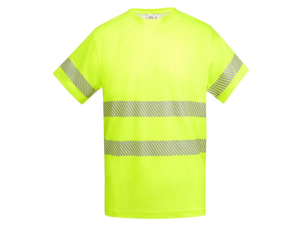 Мужская футболка с коротким рукавом с круглым вырезом под горло из основной ткани. Две светоотражающие сегментированные полосы на груди и одна на рукавах. Микс полиэстера и хлопка для повышенной воздухопроницаемости.