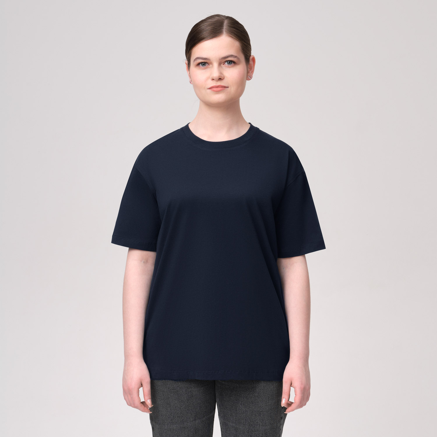 За счет продуманного кроя футболка идеально садится на разные типы фигур, создавая аккуратный силуэт.
