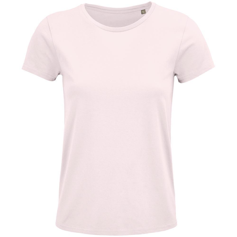 Женская бесшовная облегающая футболка из органического хлопка с круглым вырезом.