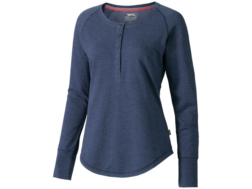 Лонгслив с длинными рукавами Touch. Универсальный покрой. Женская модель с планкой на пять пуговиц. Закрытые швы. Женская модель приталена. Двухцветная лента внутри на горловине. Пуговицы Slazenger. 52% хлопок, 48% полиэстер футер. 210 г/м2.