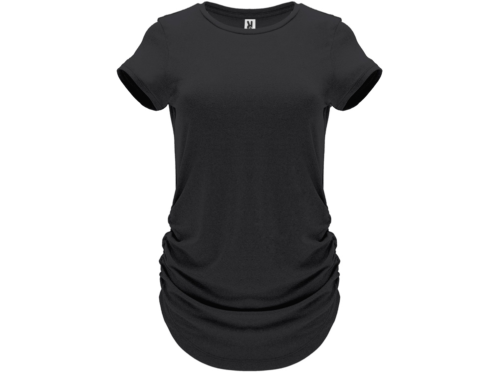 Спортивная футболка с коротким рукавом для женщин. Полотно из полиэстера на ощупь напоминающее хлопок. Круглый вырез горловины обработан бейкой из того же полотна. Эластичная драпировка по боковым швам для лучшей посадки по фигуре. Узкий силуэт.