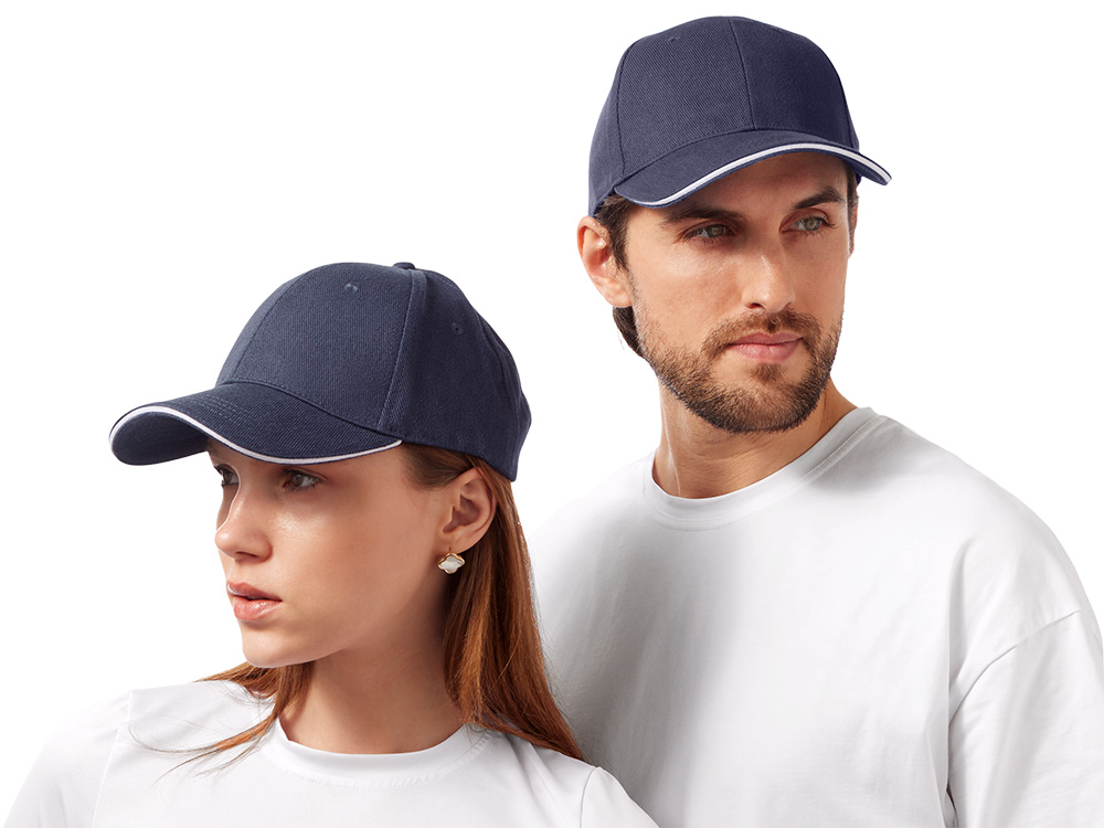Контрастный кант по козырьку и заднему хлястику.