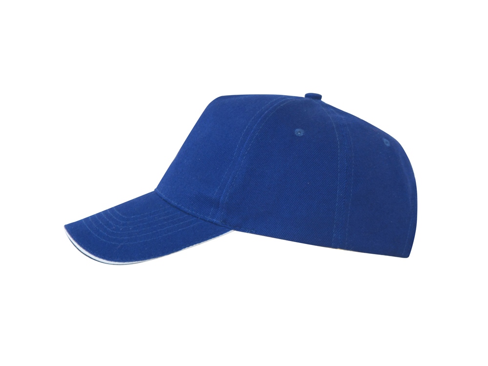 Бейсболка из 5 панелей с контрастным сэндвичем. Четыре вышитых вентиляционных люверса. Застежка на липучку.