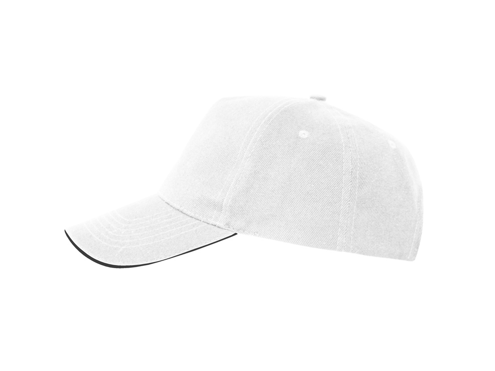Бейсболка из 5 панелей с контрастным сэндвичем. Четыре вышитых вентиляционных люверса. Застежка на липучку.