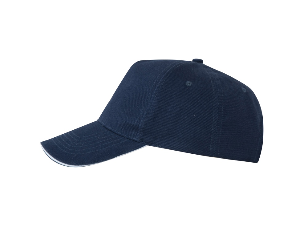 Бейсболка из 5 панелей с контрастным сэндвичем. Четыре вышитых вентиляционных люверса. Застежка на липучку.