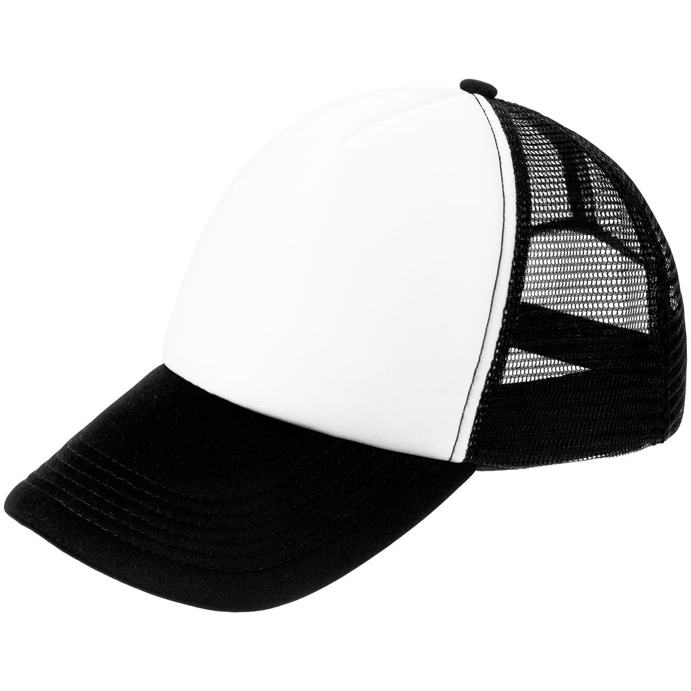 Стандартная модель с 5 клиньями без лобового шва в нестандартном исполнении. Передний клин и козырек выполнены из полиэстера с наполнителем из поролона, боковые и задние клинья — из сетки. Размер регулируется с помощью пластиковой застежки.