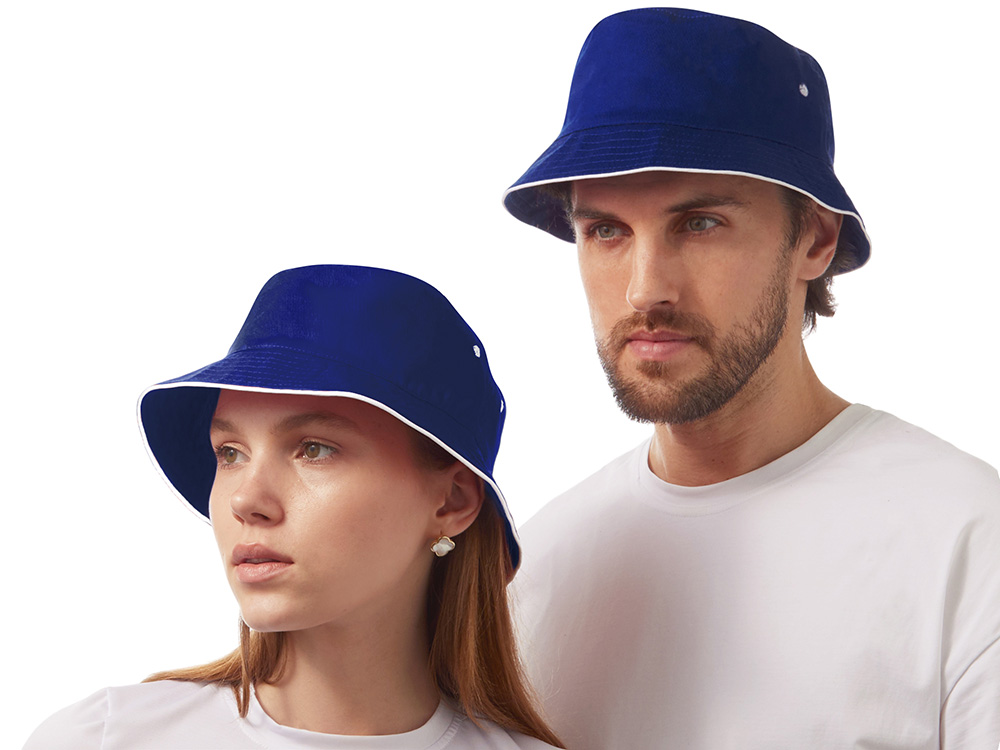 Панама из хлопкового твила с контрастным кантом и контрастными вентиляционными отверстиями.