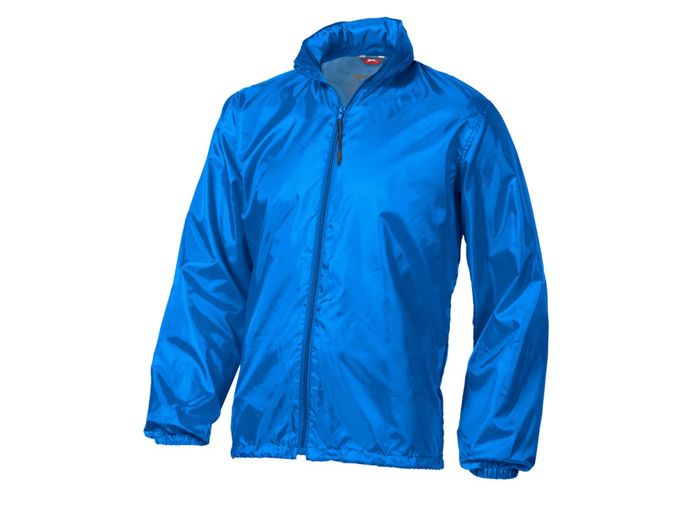 Куртка Action. Стандартный покрой. Капюшон на завязках, прячется в воротник. Один карман, куда можно сложить куртку. Эластичный поясок в боковом кармане для ношения сумочки на талии. Эластичные манжеты. Завязки со стопперами внизу. Принт Slazenger сзади. Ткань из 100% полиэстера с дышащим молочным покрытием. Термотрансфер (1 цвет (цветные изделия)) на данный товар осуществляется бесплатно. Оплачивается только настройка оборудования в размере 8700 рублей на весь тираж.