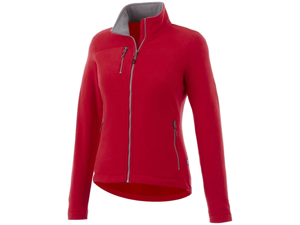 Женская микрофлисовая куртка Pitch. Карманы для рук на молнии. Нагрудный карман на молнии. Внутренняя сторона воротника в контрастном цвете. Внутренний выход для медиапроводов. Обратная контрастная молния спереди. Молния легкого скольжения. Двухцветная лента по линии окантовки горловины. Тканая -флажок сбоку. 100% полиэстер микро флис. 200 г/м².