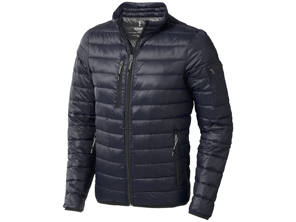 Легкая куртка- пуховик Scotia. Ткань не пропускает пух. Карманы для рук и нагрудный на молнии. Карман на рукаве на молнии можно использовать для нанесения. Резинка на манжетах и внизу куртки. Ремешки на собачку (второй комплект в цвете антрацит).Внутренний противоветровой клапан и защита подбородка. Ткань дышащая, ветронепроницаемая и влагоотталкивающая. Легкий пуховик. Ткань из 100% нейлона с матовым и блестящим водоотталкивающим покрытием, 20D. 90% пух и 10% перо. 115 г/м².