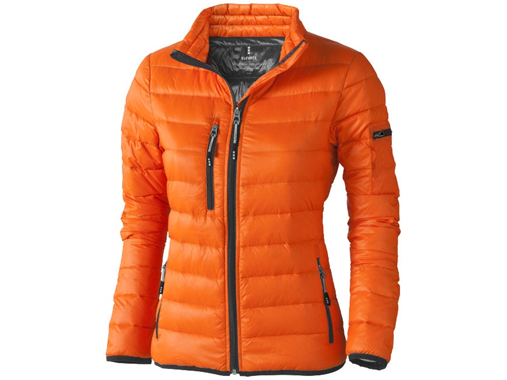 Легкая женская куртка - пуховик Scotia. Ткань не пропускает пух. Карманы для рук и нагрудный на молнии. Карман на рукаве на молнии можно использовать для нанесения. Резинка на манжетах и внизу куртки. Ремешки на собачку (второй комплект в цвете антрацит).Внутренний противоветровой клапан и защита подбородка. Ткань дышащая, ветронепроницаемая и влагоотталкивающая. Легкий пуховик. Трикотаж, 100% нейлон, 20D. 90% пух и 10% перо. 115 г/м².
