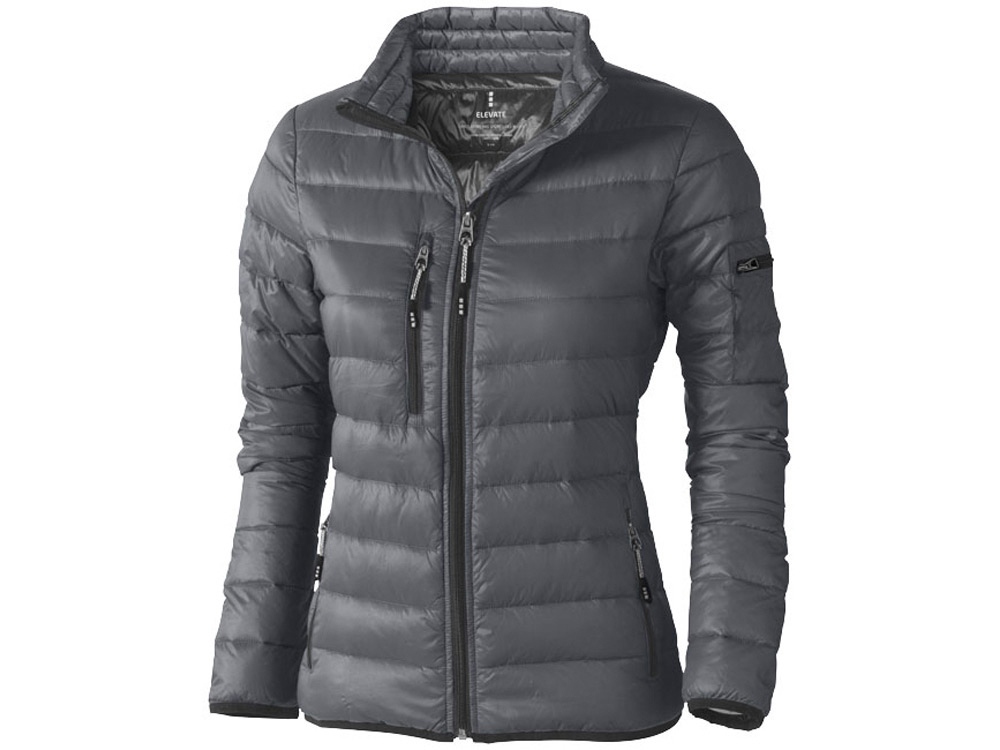 Легкая женская куртка - пуховик Scotia. Ткань не пропускает пух. Карманы для рук и нагрудный на молнии. Карман на рукаве на молнии можно использовать для нанесения. Резинка на манжетах и внизу куртки. Ремешки на собачку (второй комплект в цвете антрацит).Внутренний противоветровой клапан и защита подбородка. Ткань дышащая, ветронепроницаемая и влагоотталкивающая. Легкий пуховик. Трикотаж, 100% нейлон, 20D. 90% пух и 10% перо. 115 г/м².