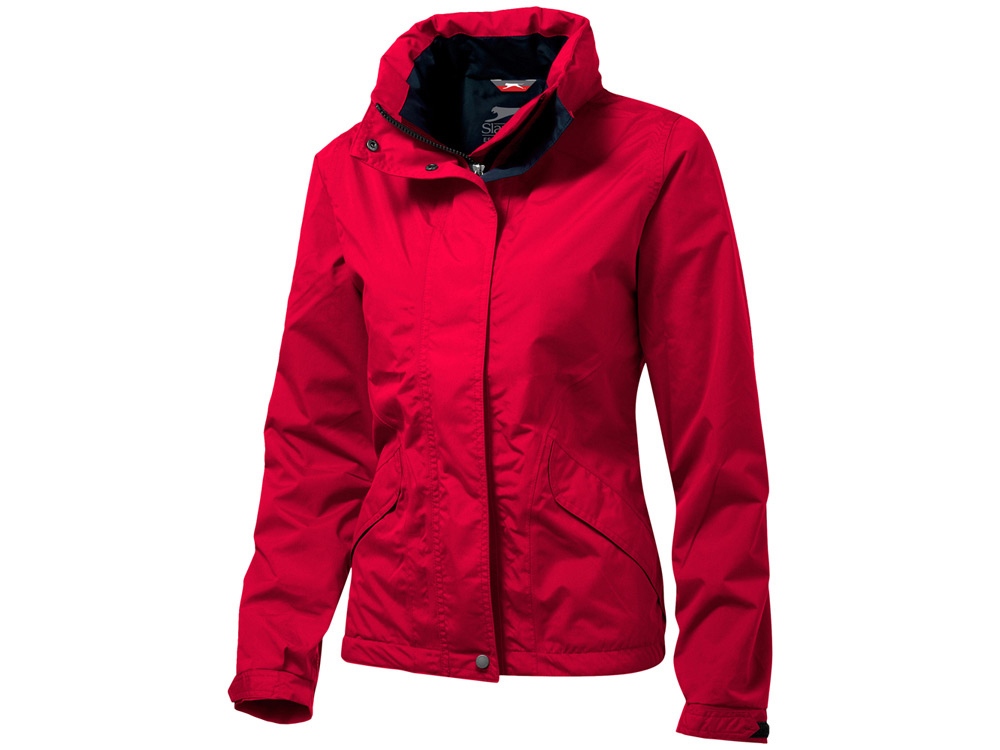 Женская куртка Slice. Стандартный покрой. Водонепроницаемая ткань. Капюшон на завязках, прячется в воротник. Передние карманы на молнии под клапаном. Регулируемые манжеты на липучках. Регулируемый низ на шнурках со стопперами. Полностью проклеенные швы. Петелька для застежки. Принт Slazenger сзади. Микроволокно добби с велюровой отделкой из 100% полиэстера с ПУ покрытием. Сетчатая подкладка из 100% полиэстера. Термотрансфер (1 цвет (цветные изделия)) на данный товар осуществляется бесплатно. Оплачивается только настройка оборудования в размере 8700 рублей на весь тираж.