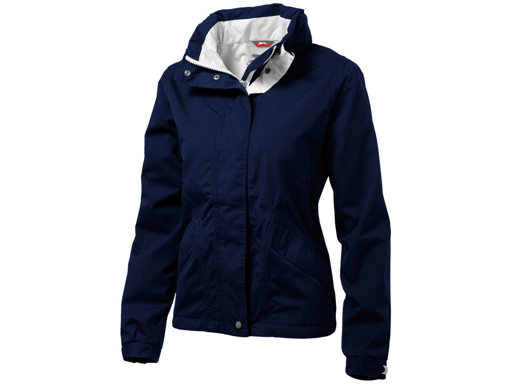 Женская куртка Slice. Стандартный покрой. Водонепроницаемая ткань. Капюшон на завязках, прячется в воротник. Передние карманы на молнии под клапаном. Регулируемые манжеты на липучках. Регулируемый низ на шнурках со стопперами. Полностью проклеенные швы. Петелька для застежки. Принт Slazenger сзади. Микроволокно добби с велюровой отделкой из 100% полиэстера с ПУ покрытием. Сетчатая подкладка из 100% полиэстера. Термотрансфер (1 цвет (цветные изделия)) на данный товар осуществляется бесплатно. Оплачивается только настройка оборудования в размере 8700 рублей на весь тираж.
