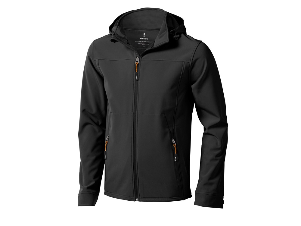 Куртка софтшел Langley. Стандартный покрой. Отстегивающийся капюшон на шнурках со стопперами. Обратная молния по центру и на карманах для рук. Регулируемые манжеты на липучках. Отражающий лого сзади. Водонепроницаемый 5000 мм. Дышащий 3000 мм. Ткань эластична в четырех направлениях. Ветронепроницаемая. Ремешки на собачку (второй комплект в цвете антрацит). Ткань из 90% полиэстера и 10% эластана, склеенного со 100% полиэстеровым микрофлисом. 300 г/м².
