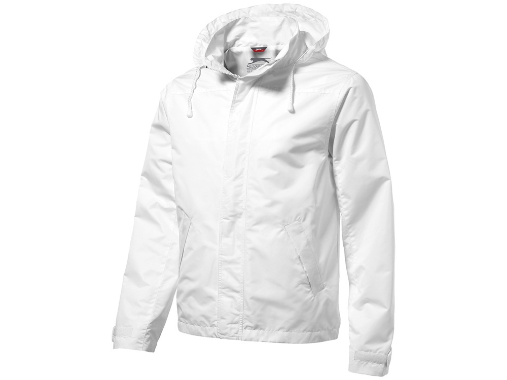 Куртка Top Spin. Прилегающий покрой. Влагоотталкивающая. Капюшон на завязках со стопперами, прячется в воротник. Два передних кармана. Регулируемые манжеты на липучках. Полумесяц. Петелька для застежки. Внутренние карманы. Принт Slazenger сзади. Ткань Taslan из 100% полиэстера с покрытием из АС. Подкладка из 100% полиэстера тафты. Термотрансфер (1 цвет (цветные изделия)) на данный товар осуществляется бесплатно. Оплачивается только настройка оборудования в размере 8700 рублей на весь тираж.