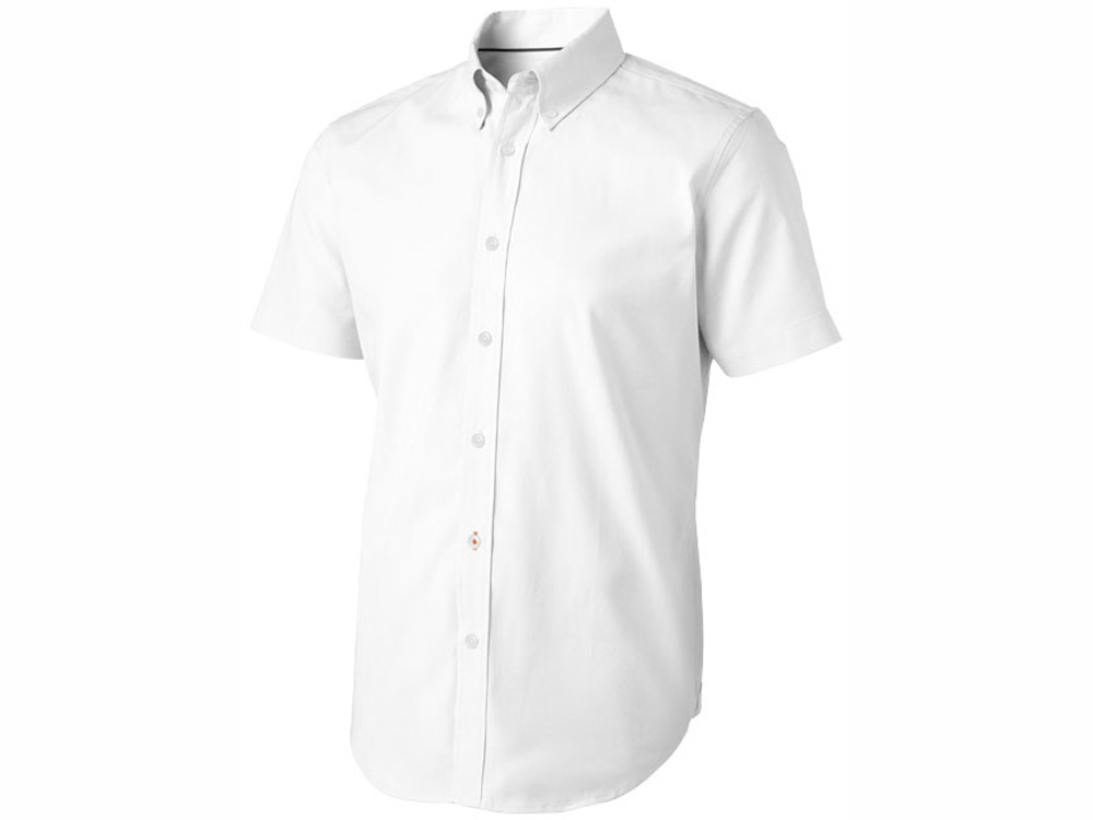Рубашка с короткими рукавами Manitoba. Стандартный порой. Белые пуговицы с гравировкой Elevate. Вторая петелька для пуговицы внизу с оранжевой строчкой. Принт лого сзади в тон изделия. Сатиновая вставка внутри горловины. Мужская модель с пуговицами на воротнике. Оксфорд, 100% хлопок. 40x32/2, 110x50. Трафаретная печать (1 цвет (цветные изделия)) на данный товар осуществляется бесплатно. Оплачивается только настройка оборудования в размере 8200 рублей на весь тираж.