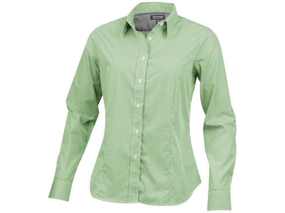 Женская рубашка с длинным рукавом Net. Универсальный покрой. Регулируемый манжет на одной пуговице. Контрастная внутренняя кокетка и планка на рукаве. Контрастные детали строчки. Перламутровые пуговицы. Крашеный в пряже поплин, 55% хлопок и 45% полиэстер с немнущейся отделкой. Термотрансфер (1 цвет (цветные изделия)) на данный товар осуществляется бесплатно. Оплачивается только настройка оборудования в размере 9200 рублей на весь тираж.