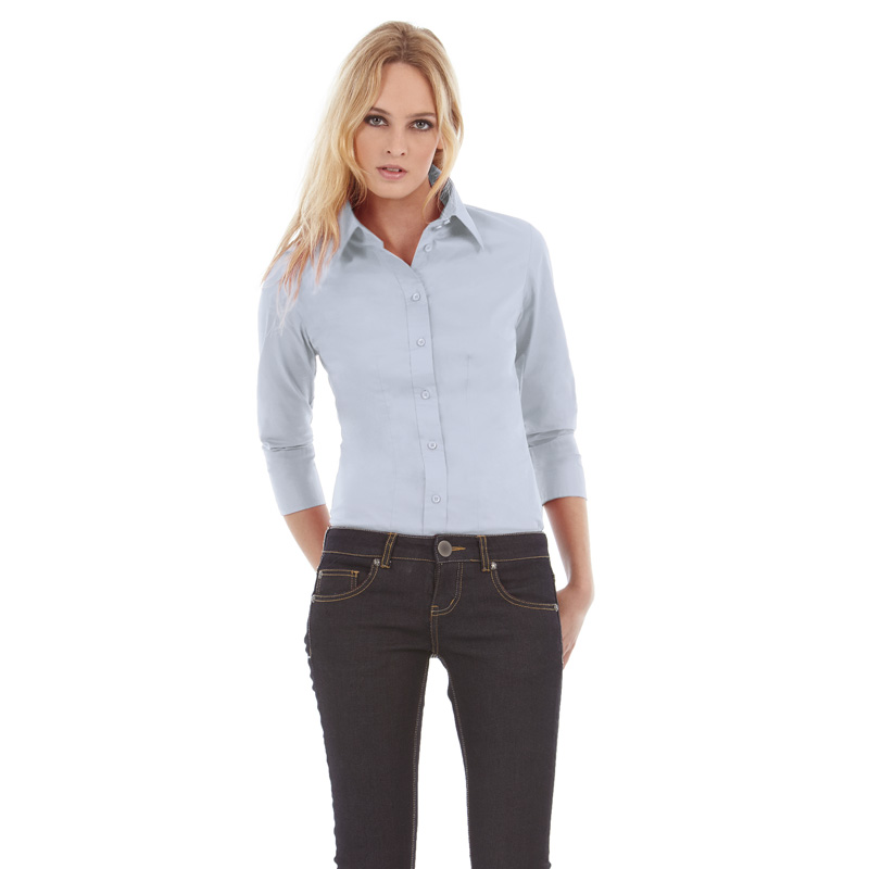 Рубашка женская Milano с рукавом 3/4, корпоративный голубой
