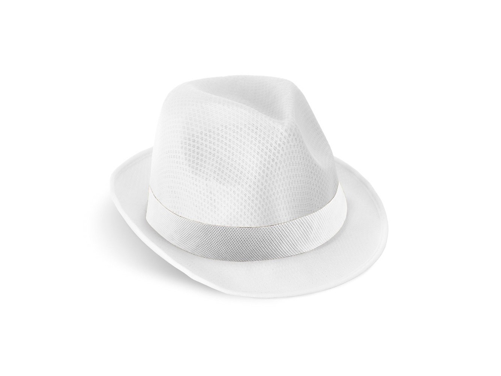 Шляпа из РР (доступна в нескольких цветах) с белой лентой из полиэстера. Для заказов без нанесения лента поставляется отдельно от шляпы. Размер: 580 мм