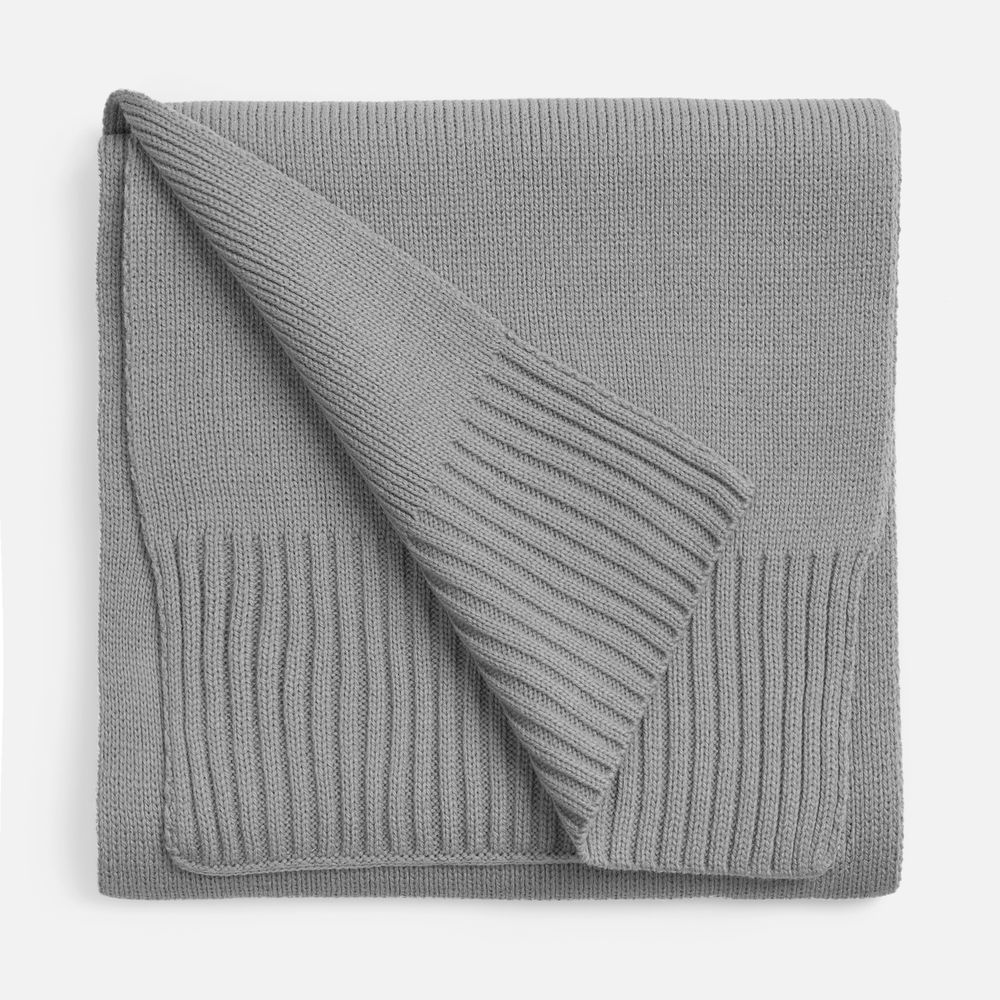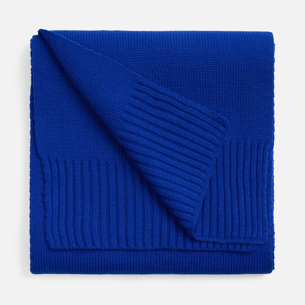 Классический однослойный шарф гладкой вязки. Края, связанные резинкой, придают изделию завершенный и аккуратный вид.
