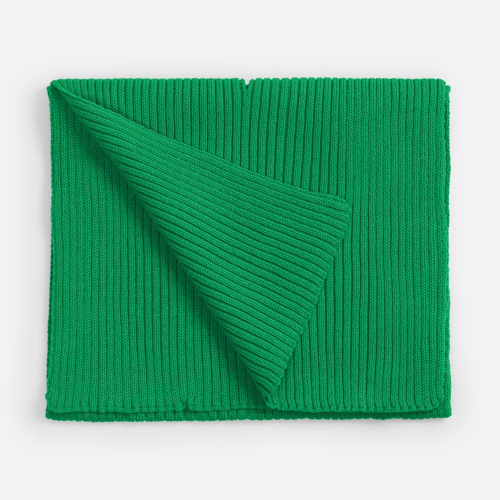 Однослойный шарф фактурной вязки с отверстием для быстрого и удобного завязывания.