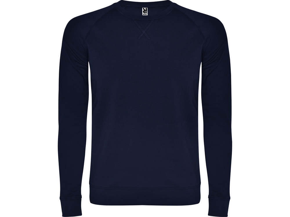 Свитшот с рукавом реглан из хлопкового футера без начеса. Манжеты по рукавами низу изделия из риба 1х1. Круглый вырез горловины дополнительно усилен тесьмой.