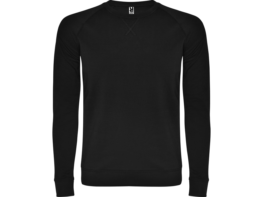 Свитшот с рукавом реглан из хлопкового футера без начеса. Манжеты по рукавами низу изделия из риба 1х1. Круглый вырез горловины дополнительно усилен тесьмой.