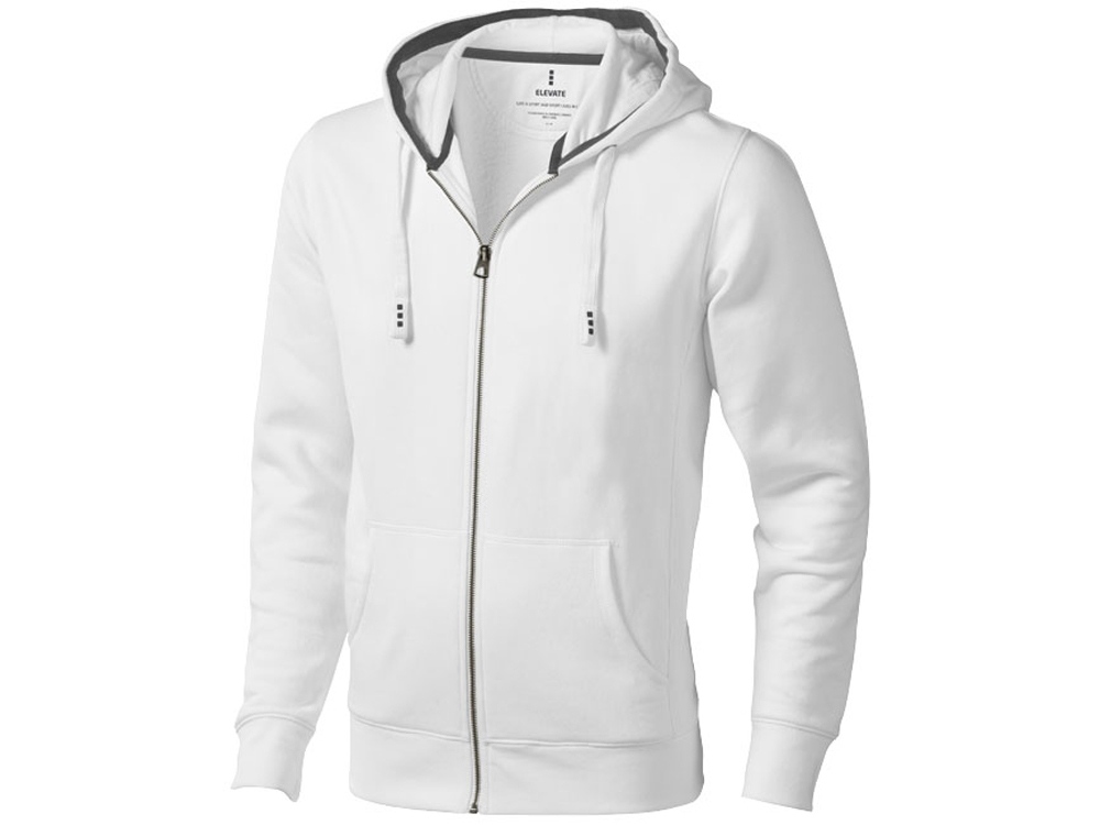 Свитер Arora с капюшоном и застежкой-молнией на всю длину. резинка 2х2 на боковых вставках, поясе и манжетах. Карман кенгуру. Мужская и женская модели с завязками на капюшоне. Подкладка внутри капюшона. Подкладка на полумесяце. Атласная лента внутри горловины. Принт лого сзади в тон изделия. Серебристые люверсы с лого. Трикотаж: 80% хлопок и 20% полиэстер, чесаная внутренняя сторона. 300 г/м².