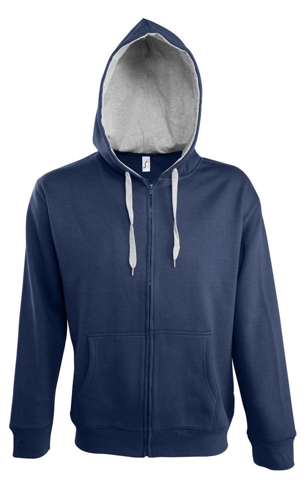 Толстовка мужская на молнии Soul men 290 с контрастным капюшоном, темно-синий, размер S